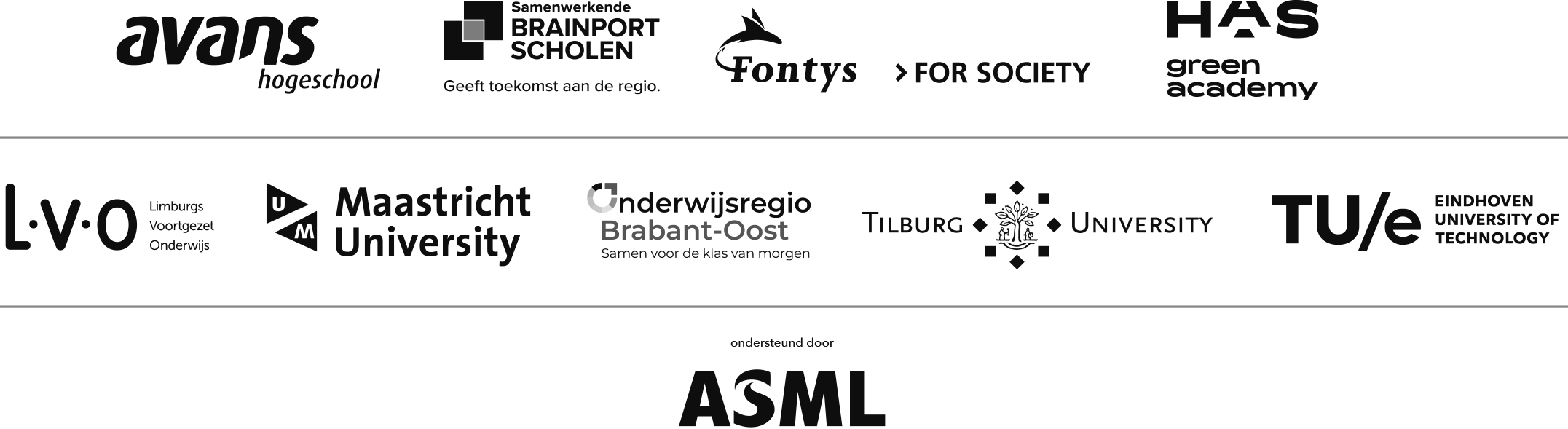 Fontys Hogeschool Brainportscholen HAS Green Academy Onderwijsregio Limburg Maastricht University (FSE) Technische Universiteit Eindhoven (TU/e) Avans Hogeschool Onderwijsregio Brabant Oost